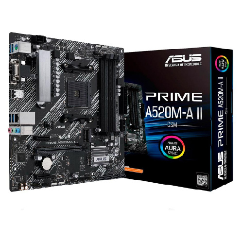 MBO ASUS PRIME A520M-AII CSM Ryzen AM4 4DDR4 D-SUB HDMI DP M.2 USB3.2 4PCIE RGB LIGHTING MIC-ATX